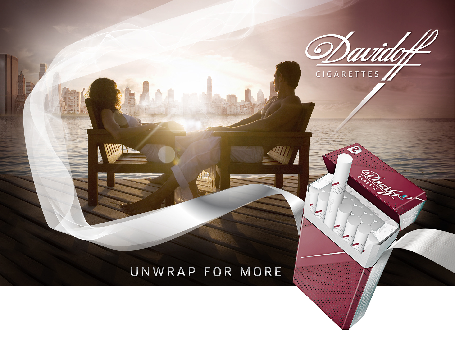 Création de visuels pour une campagne de publicité permettant de repositionner l'image des cigarettes Davidoff. Directeur de la création : Gildas Boissier - Agence Enjoy
