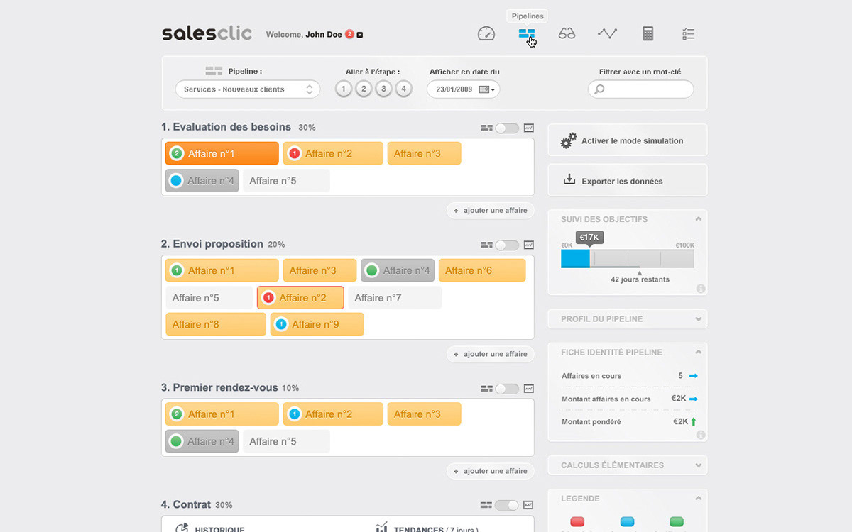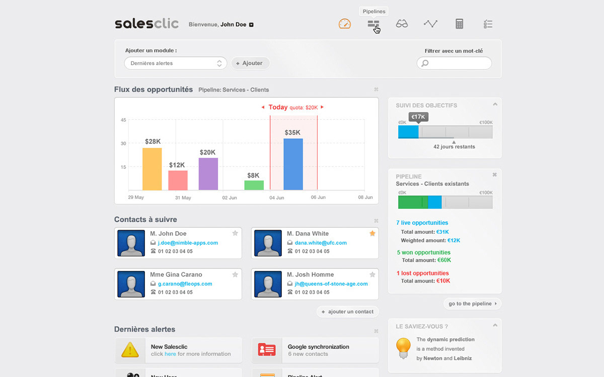 Redesign de l'application SalesClic, solution simple et efficace de gestion des ventes, d'optimisation du management, d'analyse et de projections. Préparation des visuels des différents livres blancs.